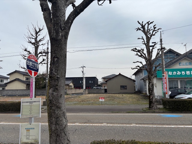 まえやま書店・なかみち若葉薬局となり。間口12.83m×奥行25m。前面道路幅(西側県道13.5m)、上下水道引き込み済み。